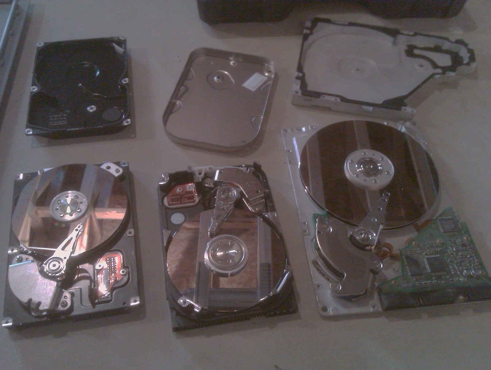 when i was a kid i had a workbench and a set of tools. when it came to fixing stuff, i was ok. i kept bicycles, go karts, and an old motorcycle running, but the real fun of the workbench was disassembling stuff. i tore apart stuff like clock radios or whatever electrical gadgets were headed toward the garbage. well, when we decided to send a couple of old desktop computers to the recycler, i figured i'd pull the hard drives apart to show the kids. i kind of felt like a kid again, too.